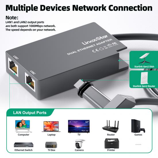 محول إيثرنت ستارلينك الجيل الثاني، محول جيجابت إيثرنت RJ45 ثنائي المنفذ من الجيل الثاني، صندوق محول ستارلينك الإصدار الثاني